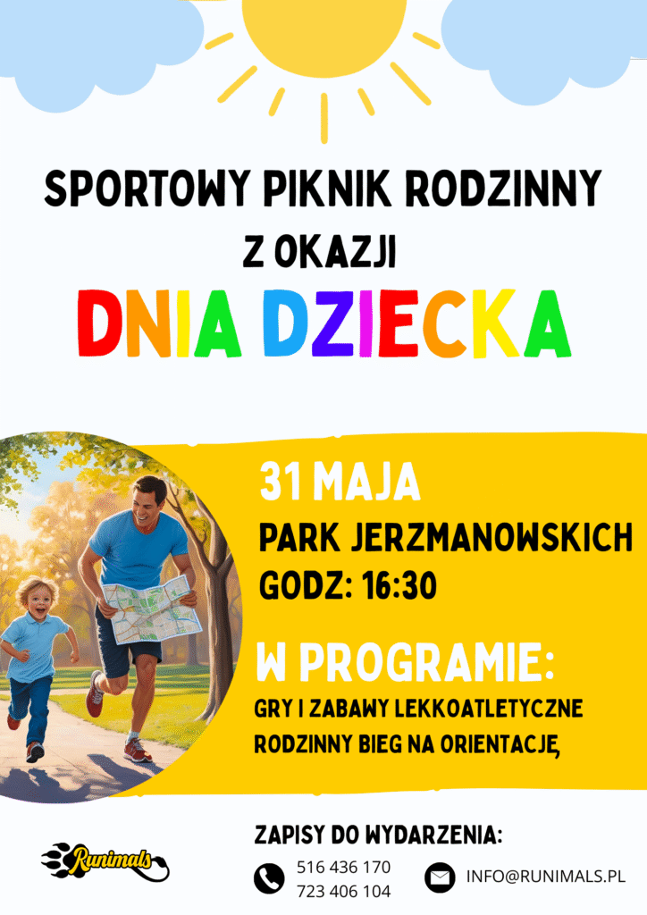 31 maja spotykamy się w Parku Jerzmanowskich w Prokocimiu aby wspólnie celebrować Dzień Dziecka na sportowo! Przygotowaliśmy dla Was gry i zabawy lekkoatletyczne, w których będziecie mogli wziąć udział razem ze swoimi pociechami.